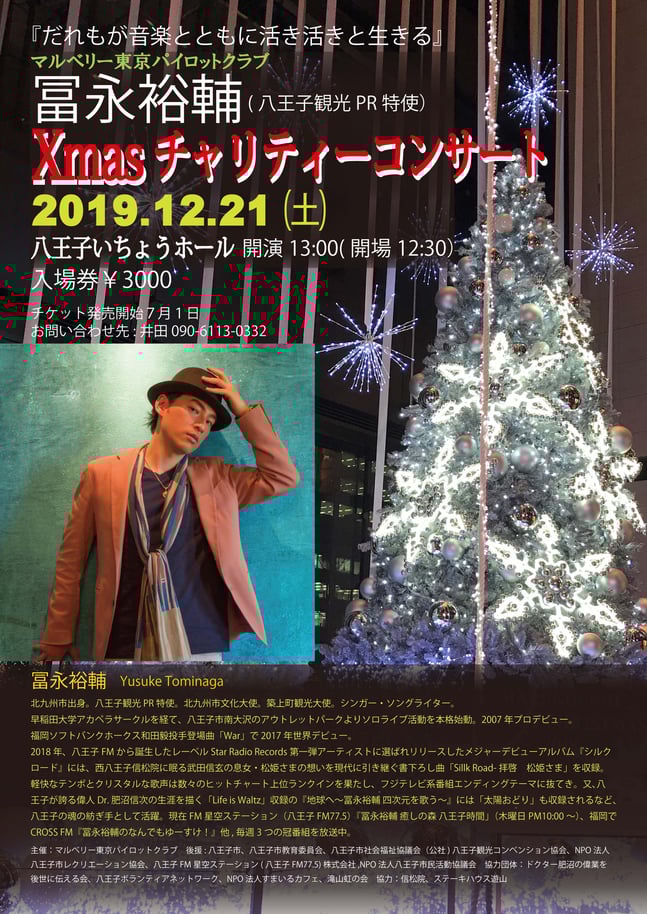 12/21(土)【LIVE】東京八王子いちょうホール大ホール『冨永裕輔Xmas チャリティーコンサートエコライフステージ2019』13時〜