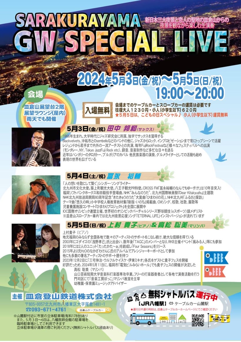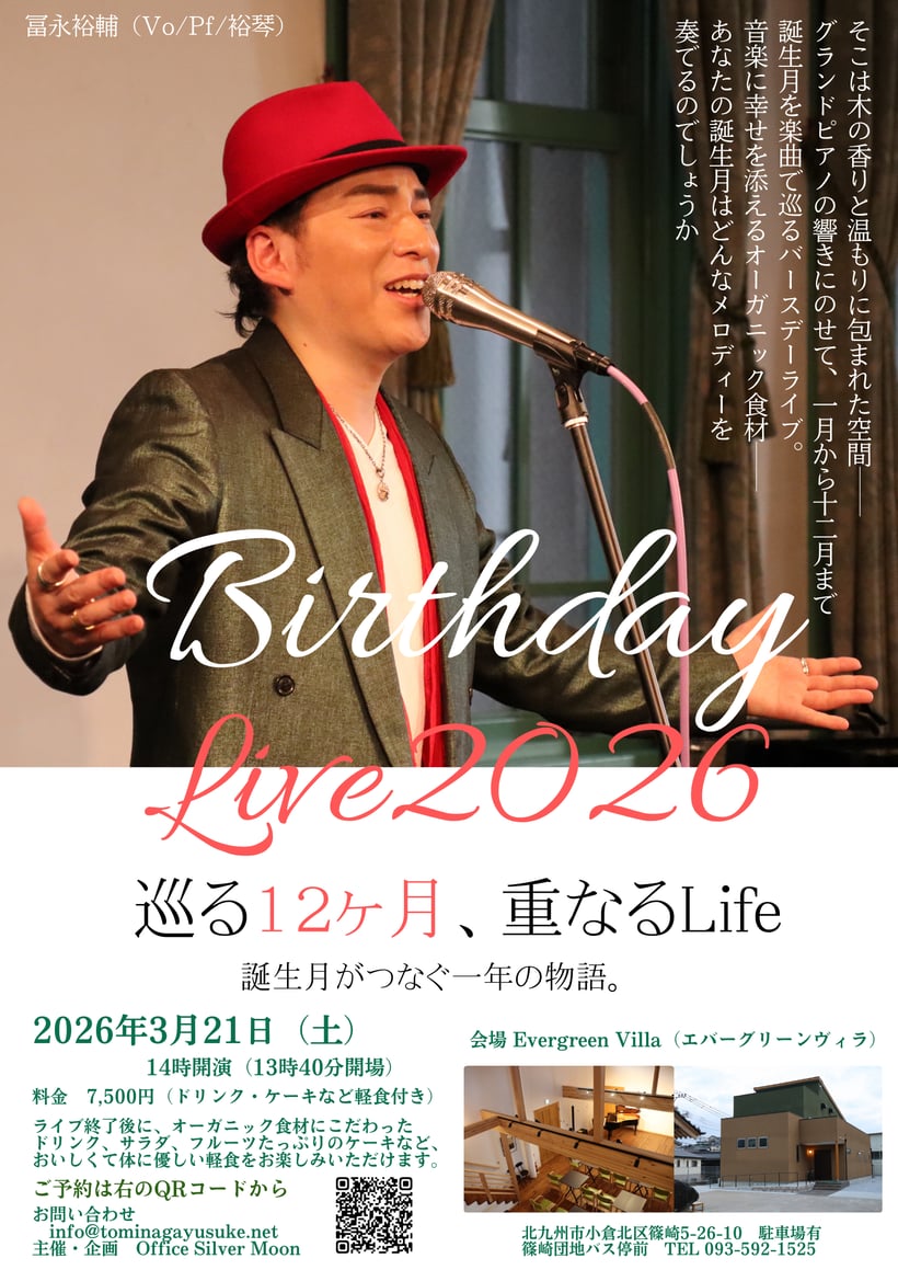 20年間でリリースした19枚のアルバムから年代順に渾身の選曲で歌い上げていきます。20年前の歌声とのデュエット】も...!若戸大橋のたもと、日本遺産の洋館「旧古河鉱業若松ビル」にて、1日限りのスペシャルコンサートで共に2025年を締めくくりましょう!